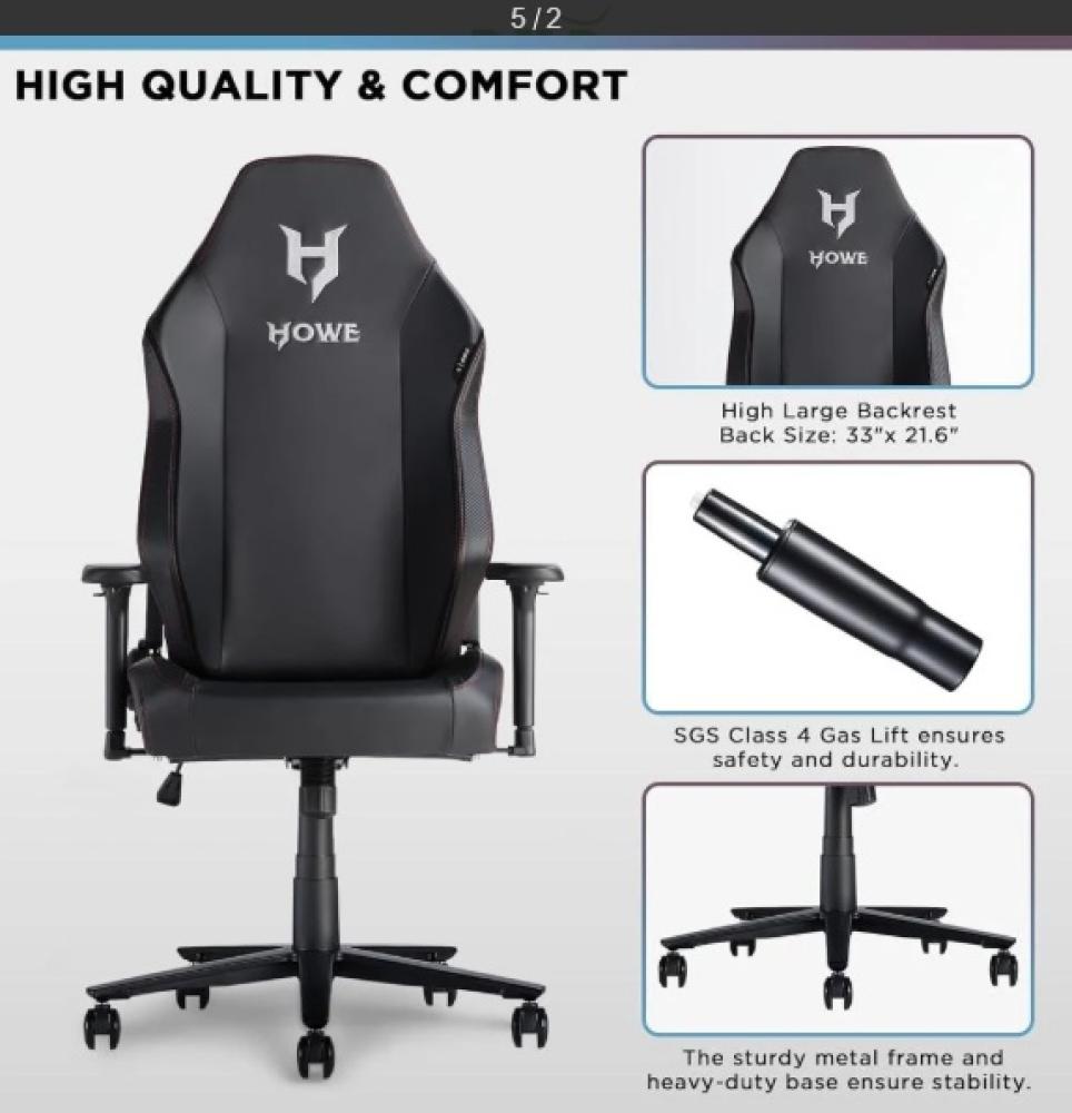 مميزات كرسي العاب احترافي اسود | HOWE Gaming Chair - Black :